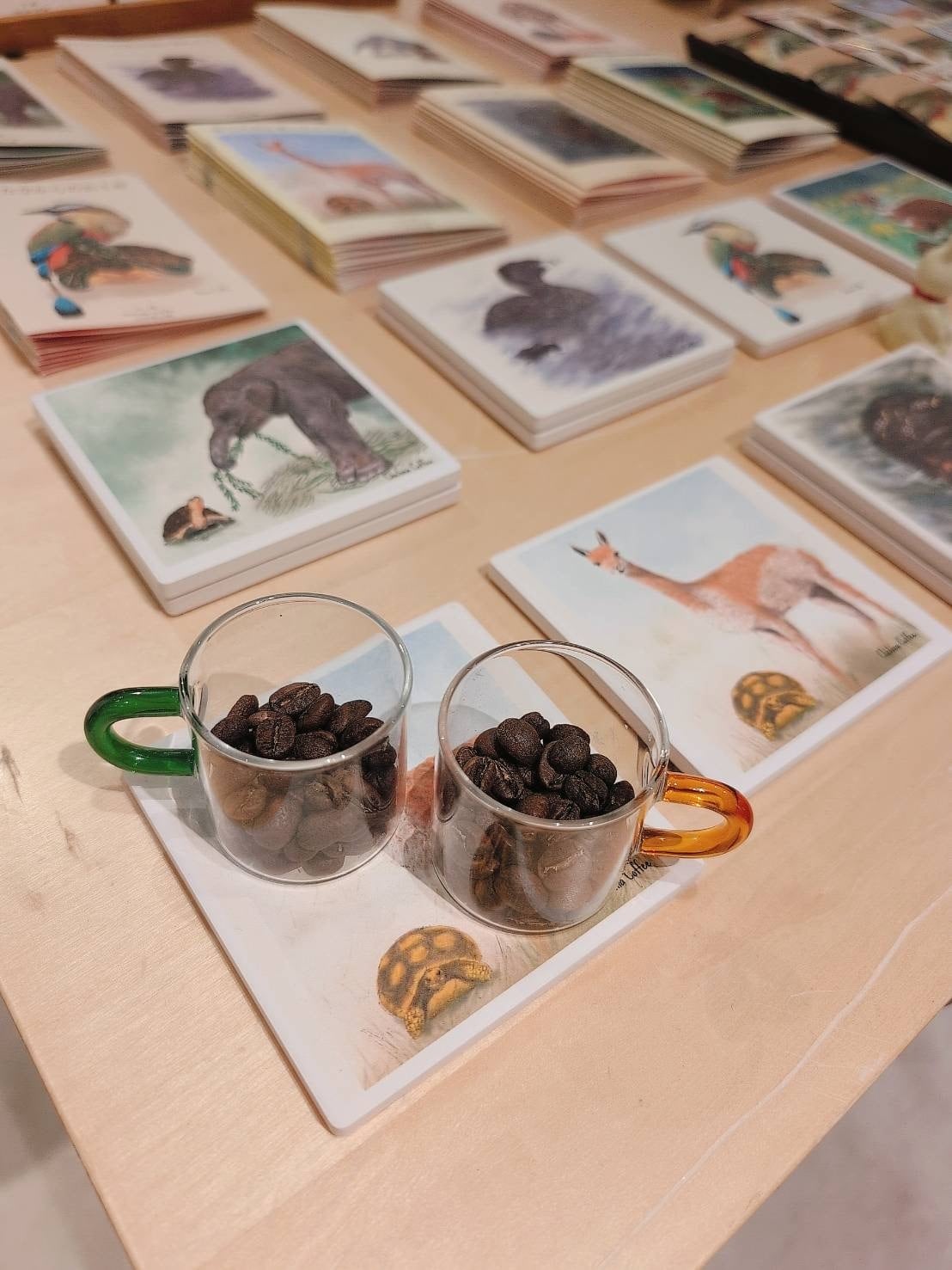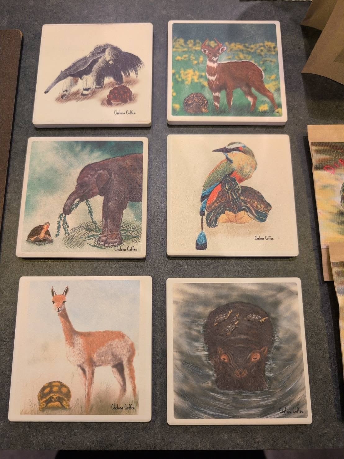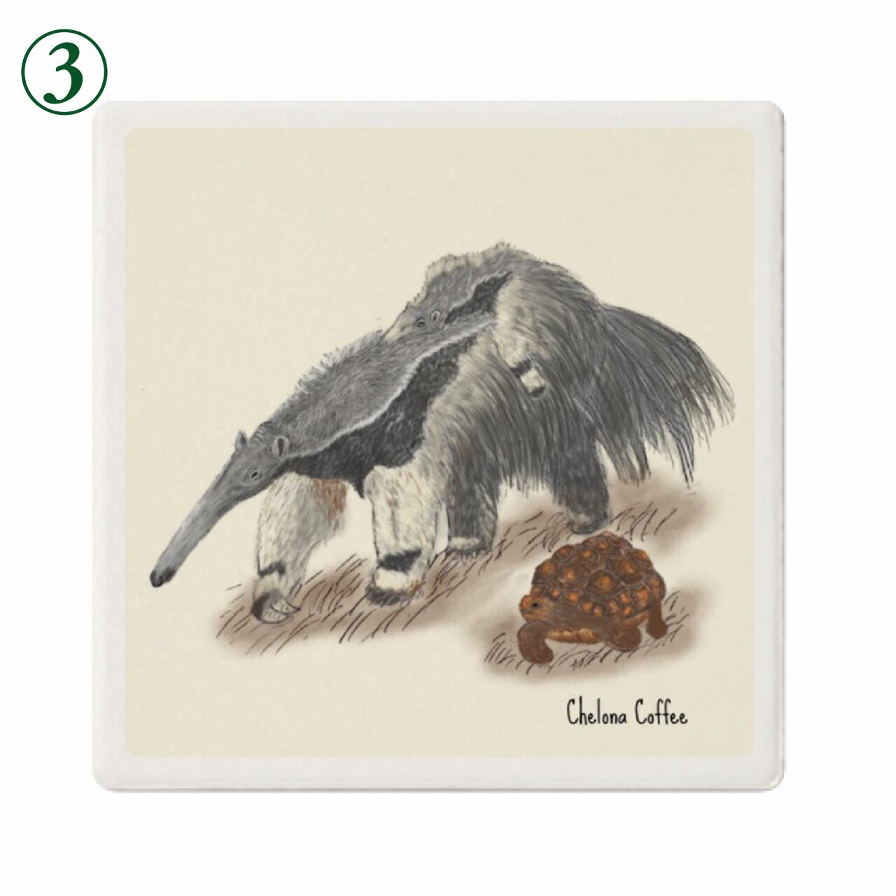 コーヒー豆生産地に生息する動物たちのオリジナルイラストコースターです!