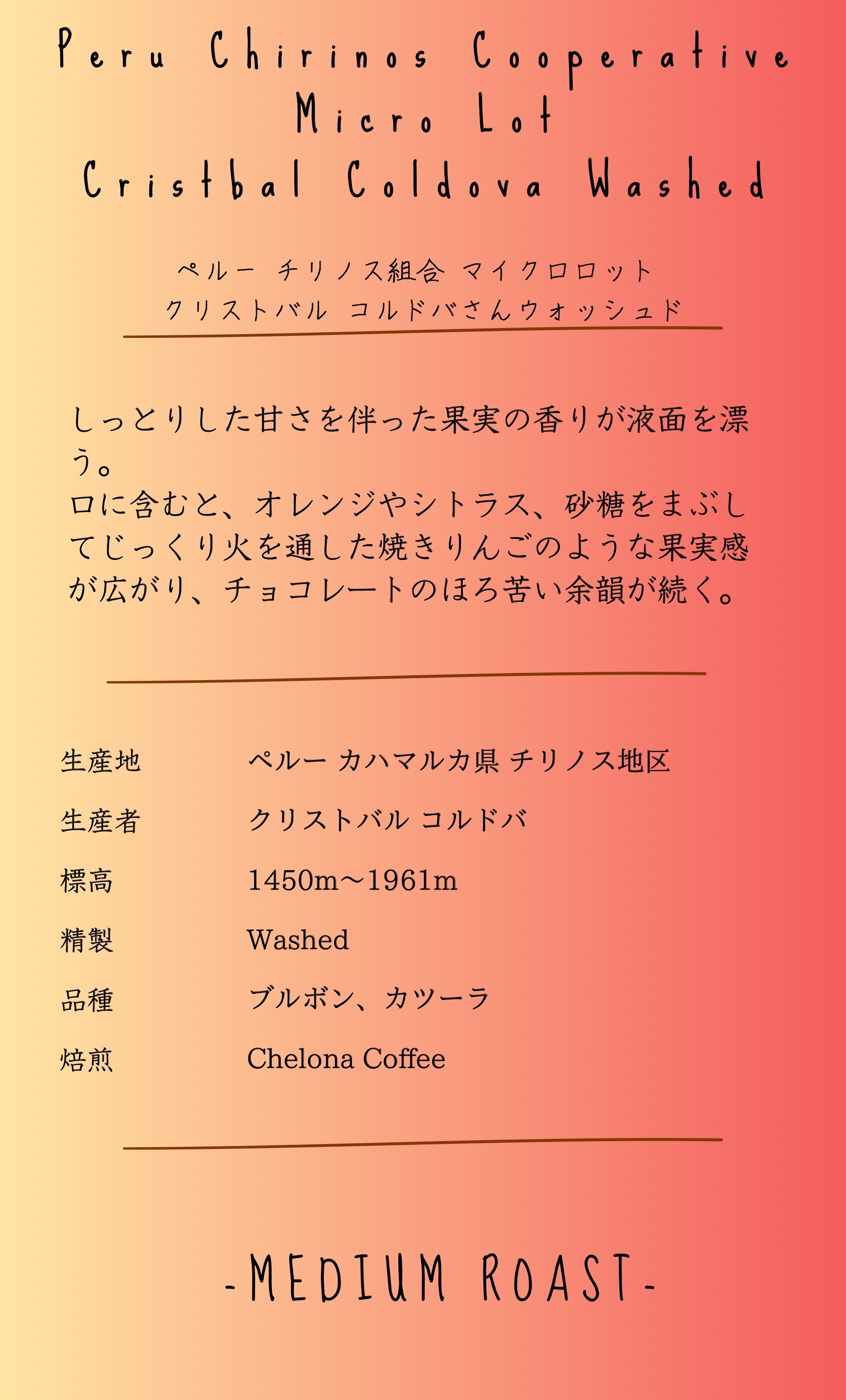 生産地:Peru Cajamarca Chirinos