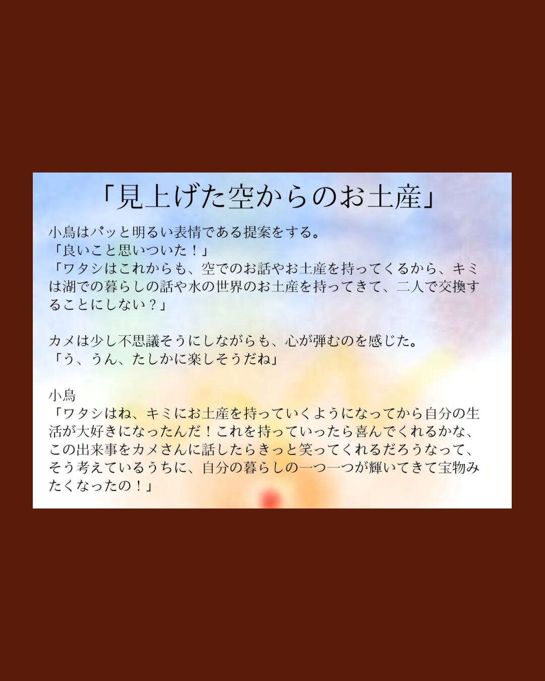 ニカラグアの地で、互いに異なる能力を羨み合うカメと小鳥。