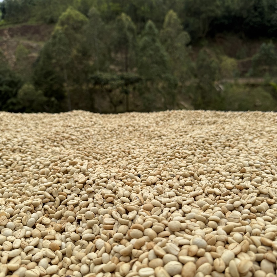 ミューシレージ除去後、カナルにて比重選別を行い、グレーディングされたウェットパーチメントをシェードの下で乾く前に重点的にハンドソーティングします。