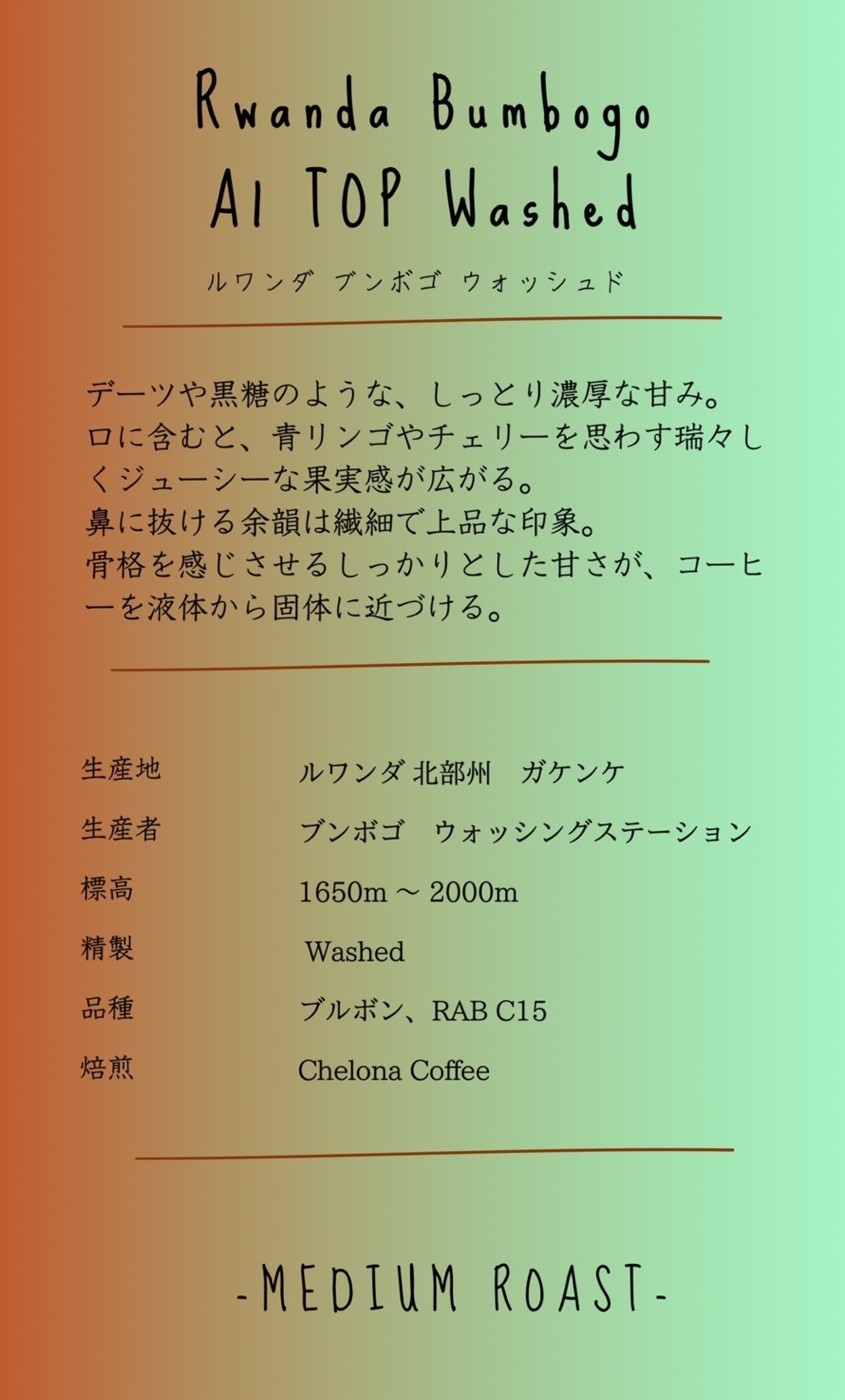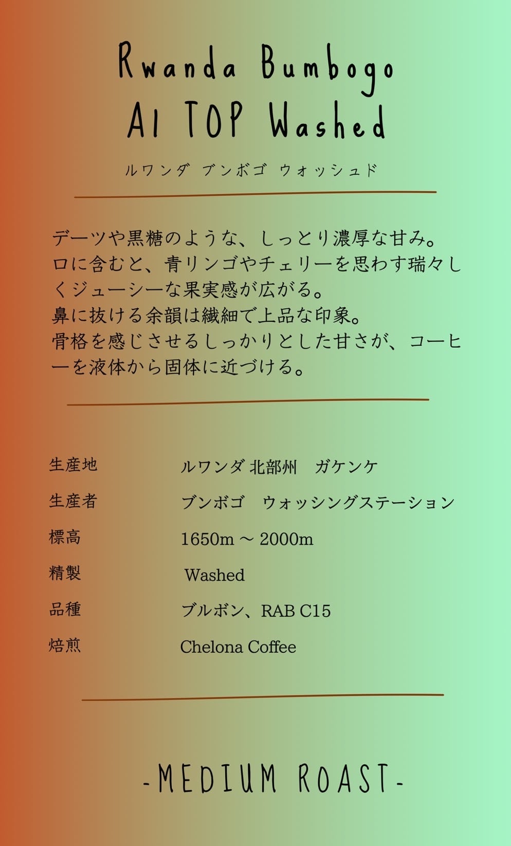 生産地: ルワンダ 北部州 ガケンケ