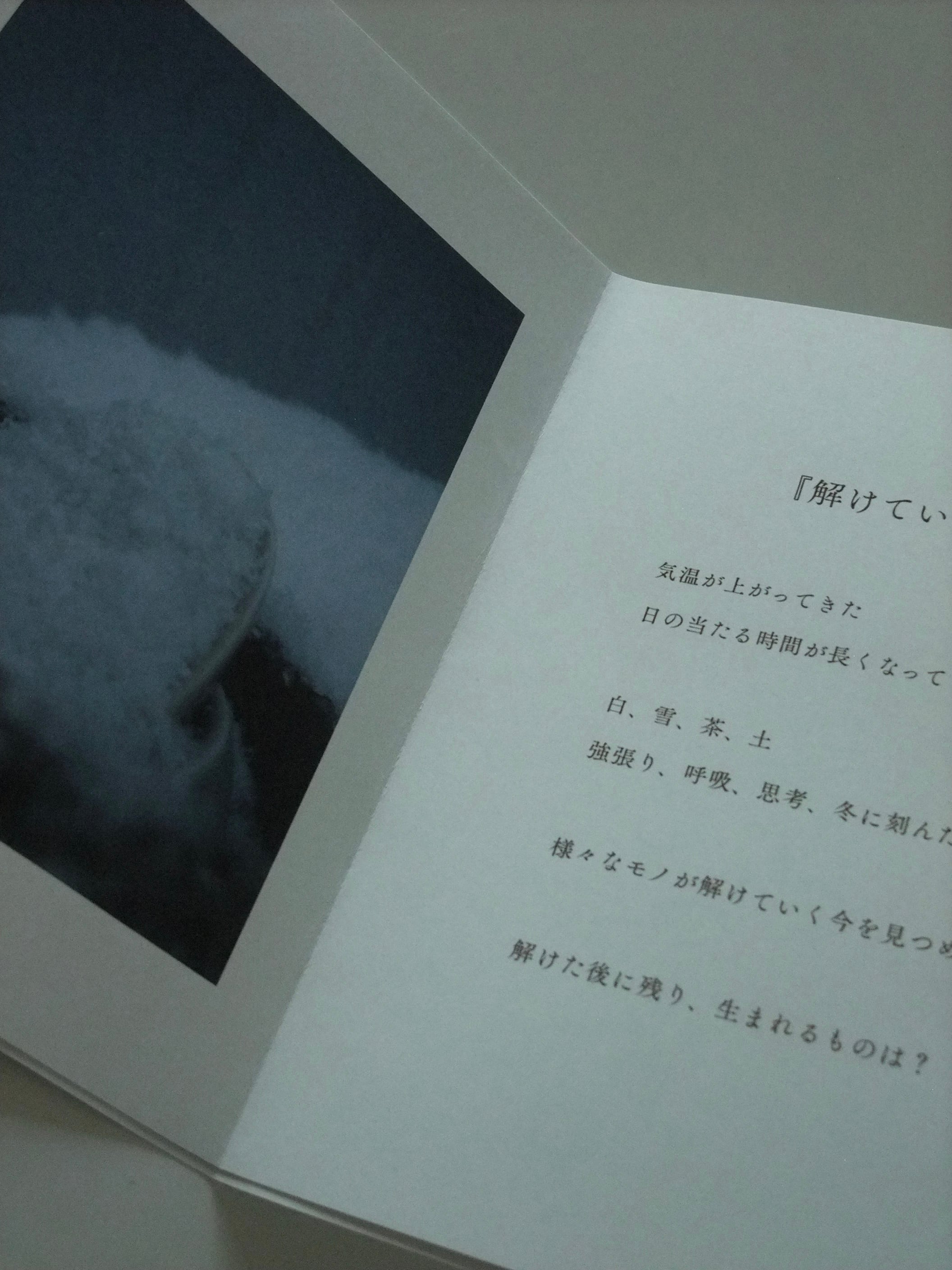 冬、土から浮かび上がる色彩、垂れていくように浮かび上がっていく色彩、器に積もる雪。