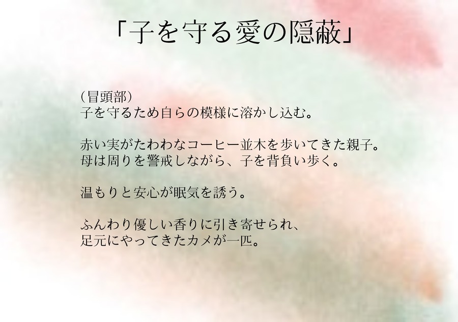 この続きは、Chelona Coffeeの「動物たちの小さな物語」小冊子で。